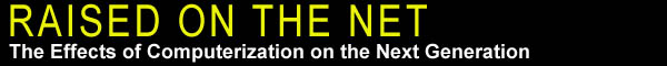 By Mike Gustin, Greg Klein, and Shana Rosenberg With the advent of mass computerization and the rapid sweep of the Internet, our society is raising a different type of child. These so called "N-gen" children "seem to be different from the TV generation in a number of ways. And these trends emerging are good news for children and society. They are alert, focused, and certainly in control." (Tapscott, 1998) We will attempt to examine the effects of computers and the Internet on this new generation of children. Today's foremost authority on children and computerization, Donald Tapscott, presents his theories in the book Growing Up Digital: The Rise of the Net Generation. We summarize these theories in order to present the popular view of how computer usage affects our children. We then look at counter arguments to some of his more optimistic predictions and generalizations. In order to examine these differing views, we conducted a study of our own, surveying a group of children from local schools. We found that although Tapscott's theories indeed hold some weight, he glossed over many of the issues for today's youth and computers. For a more in depth look into our study and our conclusions on the "N-Generation", follow our links on the left. |